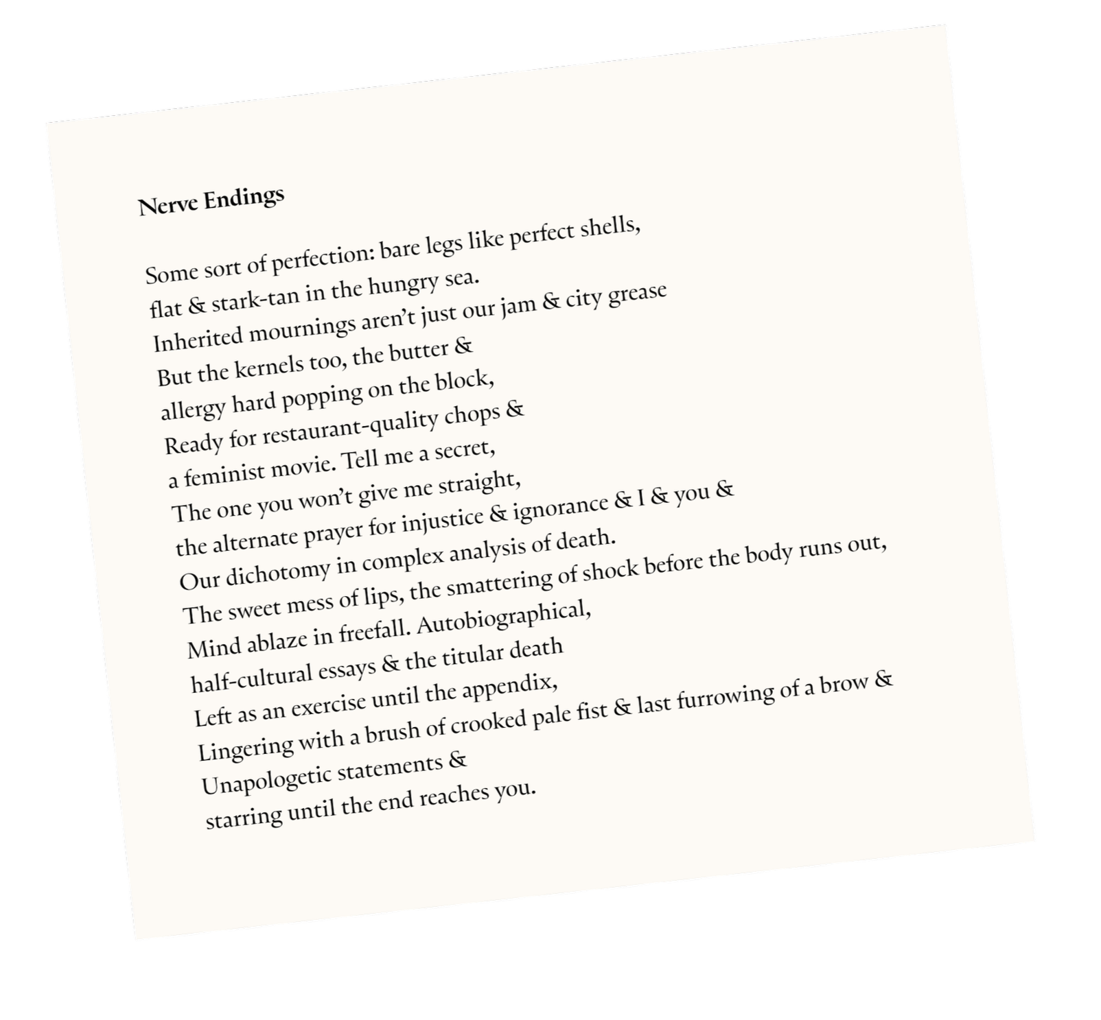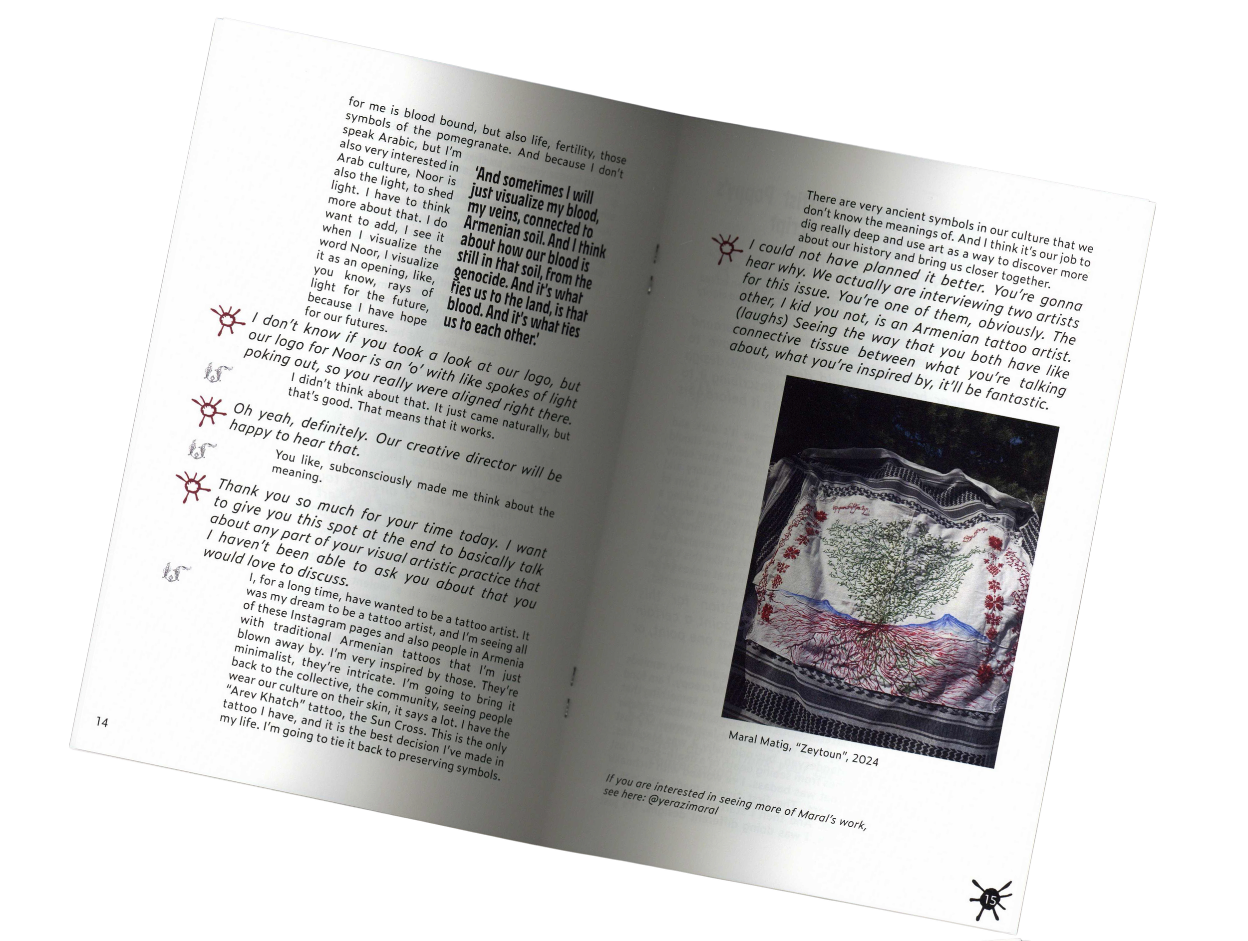 about us read submit For the first time ever, Noor is unbound. Issue 3 exists as a set of printed works—art, poetry, interviews—without a prescribed order. You'll find your own path through it. Noor is youth-led international magazine based in New York City publishing thrumming poetry, prose, and art. Read Issue 3 online today.