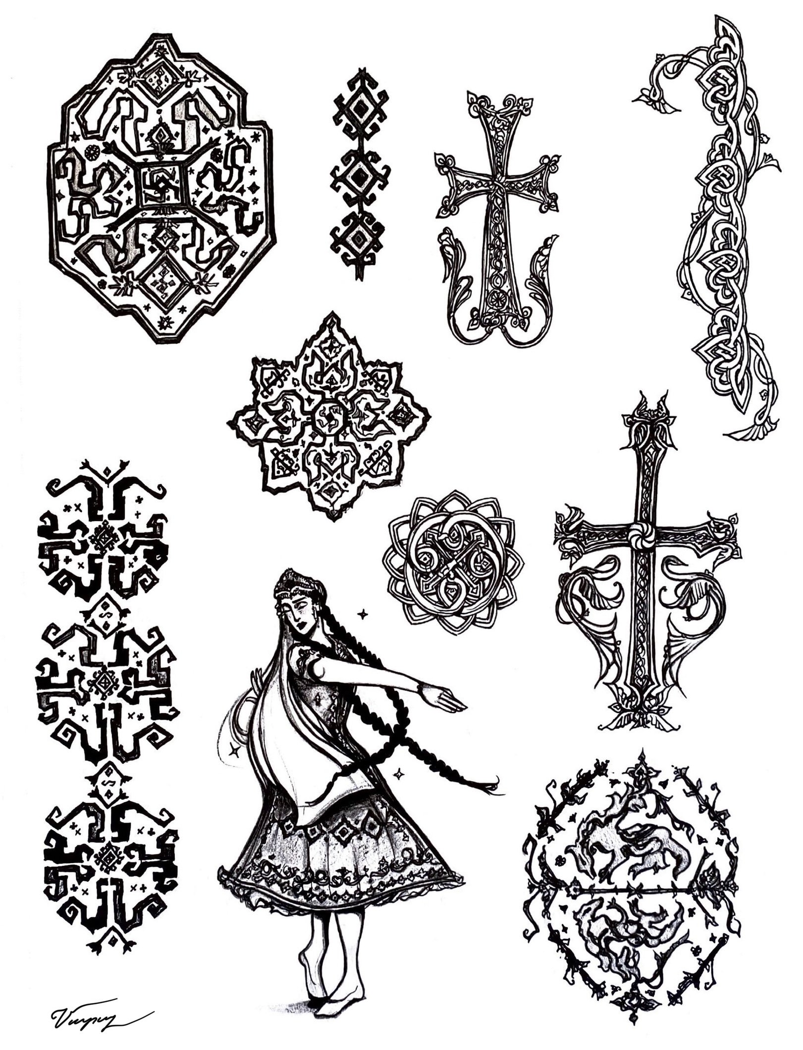 Maral: I, for a long time, have wanted to be a tattoo artist. It was my dream to be a tattoo artist, and I'm seeing all of these Instagram pages and also people in Armenia with traditional Armenian tattoos that I'm just blown away by. I'm very inspired by those. They’re minimalist, they're intricate. I'm going to bring it back to the collective, the community, seeing people wear our culture on their skin, it says a lot. I have the “Arev Khatch” tattoo, the Sun Cross. This is the only tattoo I have, and it is the best decision I've made in my life. I'm going to tie it back to preserving symbols. There are very ancient symbols in our culture that we don't know the meanings of. And I think it's our job to dig really deep and use art as a way to discover more about our history and bring us closer together.