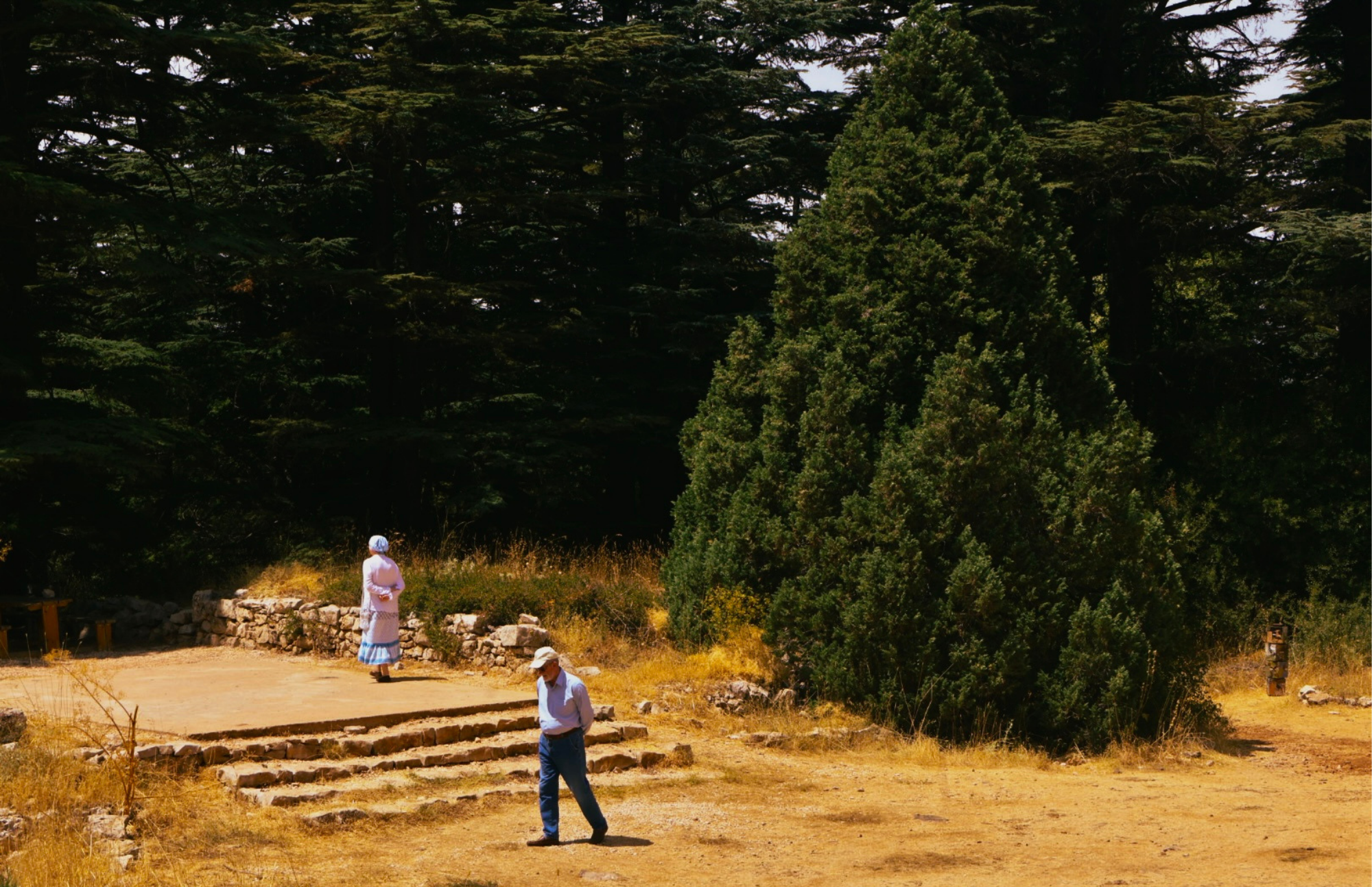 From the smell of the cedars comes childhood, while from the light comes memory. These two strangers I found standing there, shut in their silence but somehow sharing the same moment. The lush green trees almost seem to hum, and the ground, warmed by the shining sun, feels warm, as though it is retaining heat. One could almost feel the weight of their thoughts mingled with the lightness of that mountain breeze in the air between them.